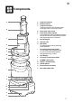 EN Components A B C D E F G H I A. B. C. D. E. F. G. H. I. J. K. L. M. N. O. P. Small food pusher Medium pusher Large food pusher The food processor will not start unless the large pusher is correctly in place. Extra wide 14cm chute Feed chute safety system Prevents the motor from operating unless the bowl and lid are correctly locked in position, and large feed pusher is inserted. Processing lid Silicone seal Mini bowl For better control when processing small quantities.