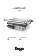 LV JŪSU JAUNĀS SAGE® IERĪCES DARBĪBA PIRMS PIRMĀS LIETOŠANAS Pirms lietošanas noņemiet un drošā veidā atbrīvojieties no jebkuriem reklāmas un iepakojuma materiāliem. Pārbaudiet, vai cepšanas plātnes ir tīras un uz tām nav putekļu. Ja nepieciešams, noslaukiet ar mitru lupatiņu. Lietojot grilu pirmo reizi, iespējams, jūs manīsit vieglus dūmus. To izraisa atsevišķu komponentu sākotnēja uzkaršana. Nesatraucieties par to! PIEZĪME LAI LIETOTU KĀ ATVĒRTU GRILU 1.