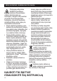 RU НАША РЕКОМЕНДАЦИЯ – БЕЗОПАСНОСТЬ НА ПЕРВОМ МЕСТЕ • Рекомендуется установить устройство дифференциальной защиты для дополнительной защиты при использовании электроприборов. Рекомендуется использовать защитные выключатели с расчетным рабочим током не более 30 мА. Обратитесь к электрику за профессиональной консультацией. Показанный символ означает, что этот прибор не может утилизироваться с бытовыми отходами.