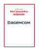 Informations importantes sur le produit Sagemcom® Mini Sound Box MSBDV00 Instructions de sécurité: 1. Placez le produit sur une surface plane. 2. Connectez l'adaptateur secteur fourni par le fabricant. Le produit Mini Sound Box MSBDV00 nécessite l'utilisation d'un adaptateur secteur 20 VDC, 2 A conforme PS2 ou LPS selon l’annexe Q de la norme UL 62368-1, édition 2. Utilisez uniquement l’adaptateur secteur fourni et approuvé par le fabricant.
