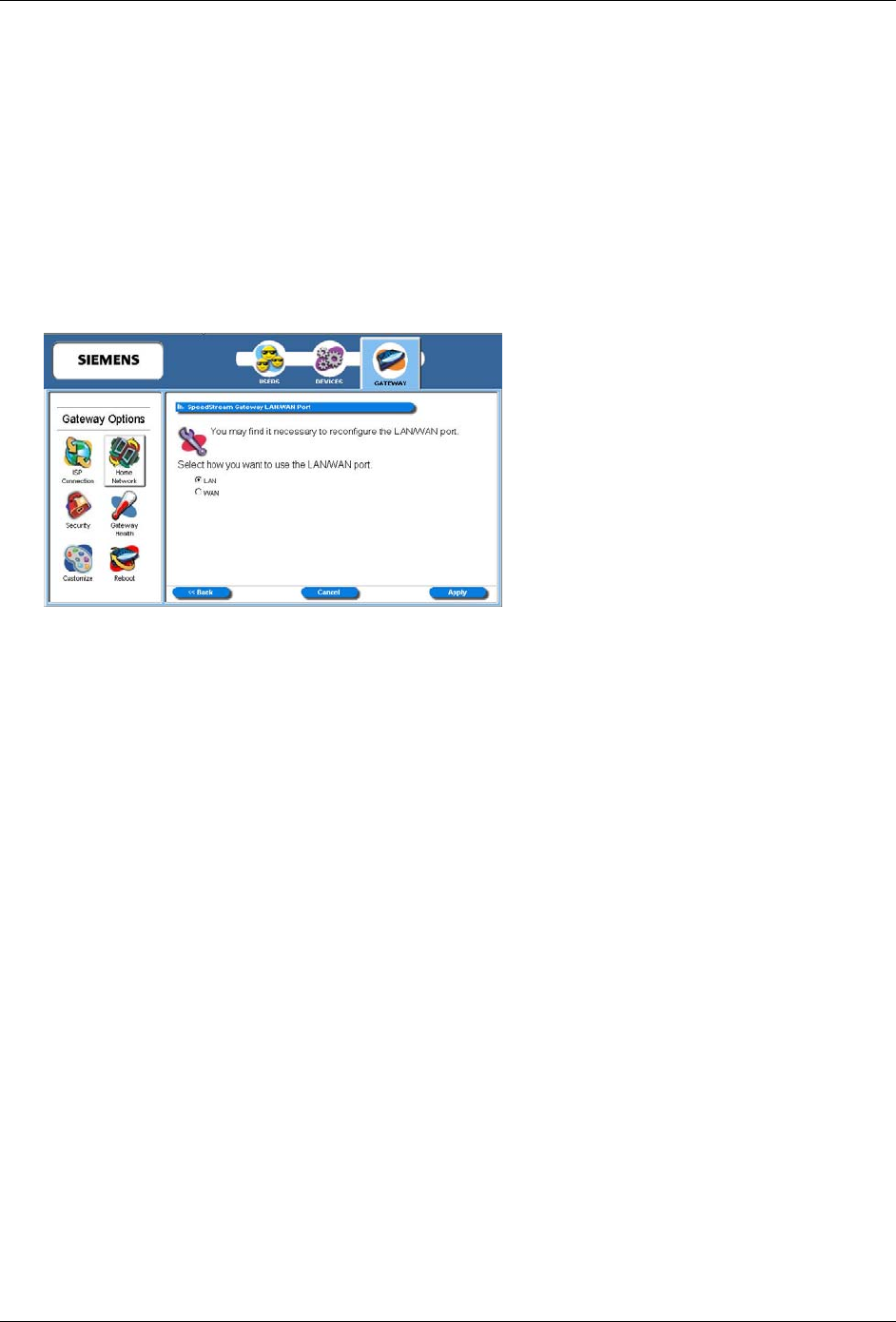 1. Click the Configure the Local SpeedStream Gateway LAN/WAN Port hyperlink. This displays the
