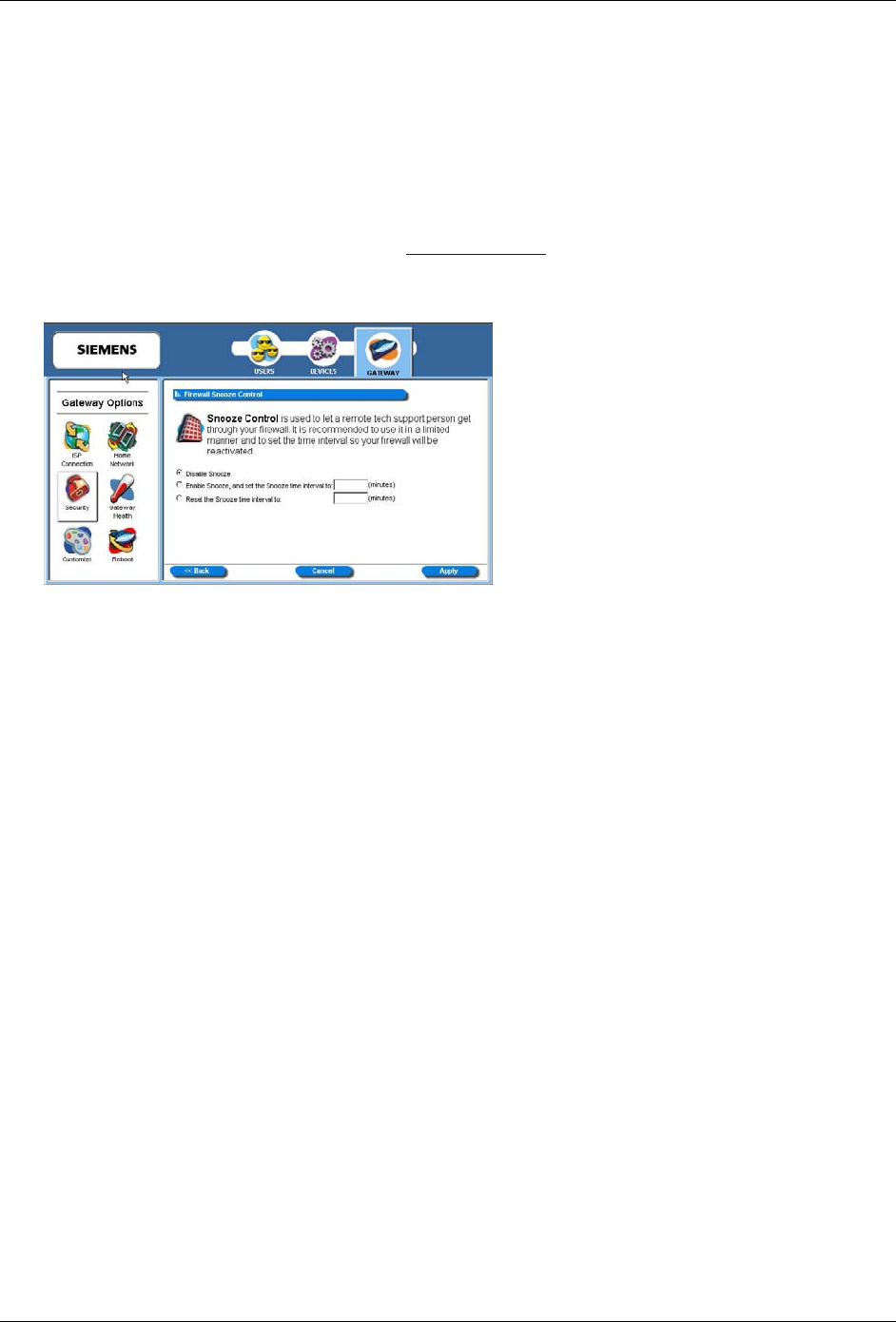 2. Click the Configure hyperlink next to Firewall Snooze Control. This displays the “Firewall Snooze