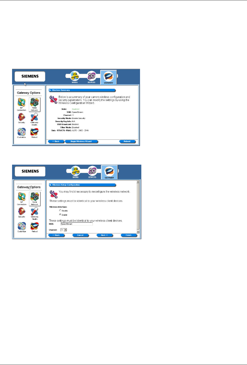 1. Click the Configure the Local SpeedStream Gateway Wireless Network hyperlink. This displays