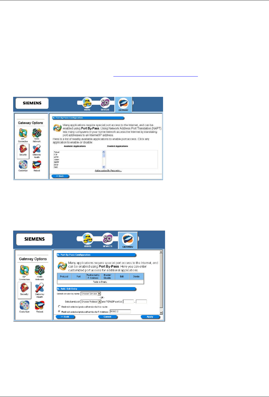 2. Click the Configure hyperlink next to Port By-Pass (NAPT). This displays the “Port-By-Pass