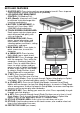 KEYS AND FEATURES 1. GO/STOP KEY: Press to turn unit on; press twice to turn off. Press to pause scrolling display; resume scrolling with ‘ (CLEAR). 2. LCD BACKLIGHT BRIGHTNESS CONTROL (Off/Medium/Full). 3. ACL (Reset): In base of unit. Used to eliminate static discharge after inserting new batteries. 4. BATTERY COMPARTMENT: In base of unit. Uses three “AAA” (AM4/R03) alkaline batteries. 5. TOUCH SCREEN CHESSBOARD: Each square registers piece movement when pressed gently with stylus or fingertip. 6.