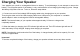 Charging Your Speaker Your speaker has a built-in, rechargeable lithium-ion battery. To avoid damage, do not attempt to remove the battery. The full performance of the battery is only achieved after a few charging-dis-charging cycles. Charge the battery fully before first use. To do so, follow the steps below: 1. Connect one end of the included USB charging cable to the charging port on your speaker.