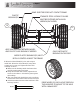 by Buyers MAKE SURE TIRE DOES NOT CONTACT FRAME PLASTIC BUSHING(22) STAINLESS STEEL LOCKING COLLARS MUST BE FASTENED WITH ALLEN WRENCH (INCLUDED) 13 12 ADD SHIM WASHERS BETWEEN WHEEL AND PLASTIC AXLE BUSHING IF NEEDED ONLY ONE PLASTIC BUSHING ON THIS SIDE INSIDE PLASTIC BUSHINGS(22) MUST BE FULLY SEATED AGAINST THE FRAME 5. Mount the Drive Wheel(12) to the axle using an m6x45 bolt. Mount the Coast Wheel(13) using shim washers and a cotter pin. Tighten the entire axle assembly as shown A.