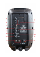 Functions 1. USB Player MODE Exchange between USB / TF / FM / BT Play/Pause Last Next RECORD Record acoustical signal into TF card 2. Master volume: it controls all the volume. 3. Power switch 4. USB/TF card input 5. Aux input 6. Treble: to control the tone level of high frequency at range -12dB to +12dB 7. MIC priority button 8. Bass: to control the tone level of low frequency at range -12dB to +12dB 9. MIC volume: it controls the volume of Microphone 10. Adapter charging 11. ECHO controller 12. 6.