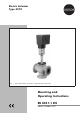 Installation 2 Installation 2.1 Mounting position Installation depends on the mounting position of the valve. However, do not install the actuator suspended downwards. Note! Manual override is only possible in actuators with fail-safe action when the power supply is connected (see section 4.1). 2.2 Attachment to the valve Series V 2001 (DN 15 to 80), Type 3260 Valves (DN 65 to 150) and Type 3214 Valves (DN 65 to 100) 1. Remove protective covers and unscrew nut (6) from the control valve. 2.