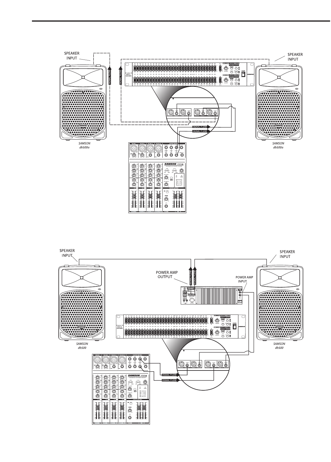 of a 2-channel power amp. Next, the power amplifier’s outputs are connected to the passive (non-powered) loudspeakers.