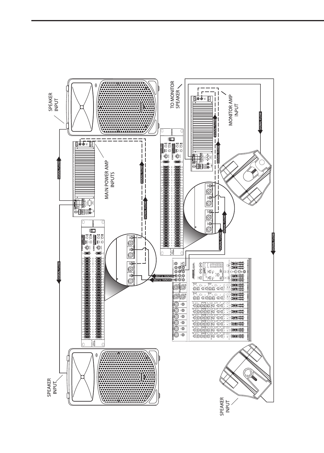 of the 2-channel power amp. Finally, the power amplifiers outputs are connected to the passive (non-powered) monitor loudspeakers.