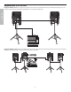 ENGLISH Expedition Pro XP300 Using one XP300 and an XP200 (stereo operation): In this example, microphones are connected to the XLR mic inputs of channels 1 and 2 of an XP300, and a stereo keyboard is connected to the stereo 1/4" TRS connector of channel 3/4 of the XP300 (using a Y-cord, with the tip carrying the left signal and the ring carrying the right signal). A connection is then made between the Right output of the XP300 to the XLR input of an XP200.
