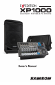 Introduction Thank you for purchasing the Expedition XP1000 PORTABLE PA SYSTEM from Samson! The XP1000 delivers the optimum balance between huge, awesome sound and portability. The system is light enough for one person to carry, and packs together into a single unit, making it amazingly easy to transport even in the trunk of a compact car. The XP1000 system is comprised of two 10” 2-way speaker cabinets, a 10-channel, 1000 watt powered mixer, and two speakers cables.