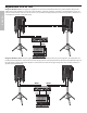 Expedition Pro XP100 ENGLISH Using two XP100s in mono: A single mono signal (bus or aux send) is routed from a mixer to a power amplifier. One speaker output of the power amplifier is connected to either the XP100 1/4" input (solid line) or Speakon™ input (dotted line), and a connection is made between either the 1/4" extension to a second XP100’s input (solid line) or between the Speakon™ extension to a second XP100’s Speakon™ input (dotted line).
