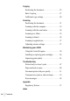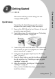 Contents Contents Getting Started Quick Setup . . . . . . . . . . . . . . . . . . . . . . . . . . . . 1 About the software . . . . . . . . . . . . . . . . . . . . . . . 2 Installing the software. . . . . . . . . . . . . . . . . . . . . 4 Cable and power connections . . . . . . . . . . . . . . . 5 Component locations . . . . . . . . . . . . . . . . . . . . . 6 Control Panel features. . . . . . . . . . . . . . . . . . . . . 7 Where to go from here . . . . . . . . . . . . . . . . . . . .