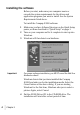 If the CD does not run automatically, you will need to start it yourself: Getting Started 5 a From the Windows Start button, click Start > Run. b Type x:\setup.exe (where x is the drive letter for your CD-ROM drive, usually d, e, or f) c Click OK. When the A3000 setup screen appears, follow the onscreen instructions to complete the software installation.