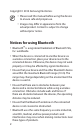 • Some devices, especially those that are not tested or approved by the Bluetooth SIG, may be incompatible with your device. • Do not use the Bluetooth feature for illegal purposes (for example, pirating copies of files or illegally tapping communications for commercial purposes). Samsung is not responsible for the repercussion of illegal use of the Bluetooth feature.