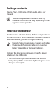 Package contents Device, Pouch, USB cable, 3.5 mm audio cable, user manual The items supplied with the device and any available accessories may vary depending on the region or service provider. Charging the battery This device has a built-in battery. Before using the device for the first time or when the battery has been unused for extended periods, you must charge the battery. Use only Samsung-approved chargers and cables.