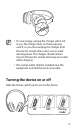 • Use only one finger on the touch pad. It may not work if you use more than one finger. • The touch pad cannot be used while the headset is connected to another device via an audio cable. Function Method Adjusting the volume • Drag upwards or downwards. • Playing multimedia files Play or pause the file: Doubletap. • Play the next or previous file: Drag forwards or backwards. Using calling features • • Answer or end a call: Double-tap. • Tap and hold for more than 3 seconds.