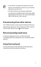 • Once devices are paired, recently connected devices automatically connect to your headset whenever you turn it on. • The NFC antenna area and the method for connecting via the Bluetooth feature may differ depending on the device. For more information, refer to the device’s user manual. Disconnecting from other devices Turn off the headset or deactivate the Bluetooth feature. Alternatively, place the connected device’s NFC antenna near the NFC antenna area ( ) of the headset.