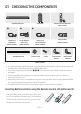 01 CHECKING THE COMPONENTS PAIR SOUND MODE VOL WOOFER SOUNDBAR Soundbar Main Unit 1 2 Power Cord (Subwoofer) (AH81-09821A) AC/DC Adapter (Main Unit) (AH81-09747A) Subwoofer Remote Control / Batteries (AH81-09748A) Power Cord (AC/DC Adapter) (AH81-09821A) Optical Cable (AH81-09754A) 3 x2 Wall Mount Guide Holder-Screw x2 Screw Bracket-Wall Bracket-Wall Mount L Mount R (AH81-09749A) •• For more information about the power supply and power consumption, refer to the label attached to the p