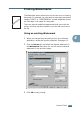 Editing a Watermark 1 When you change the print settings from your software application, access the printer properties. See page 4.2. 2 Click the Extras tab, and click the Edit button in the Watermark section. The Watermarks window appears. 3 Select the watermark you want to edit in the Current Watermarks list, and change the watermark message and the options. Refer to “Creating a Watermark” on page 4.20. 4 Click Update to save the changes. 5 Click OK.