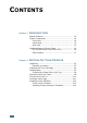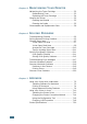CONTENTS Chapter 1: INTRODUCTION Special Features .................................................. Printer Components ............................................. Front View ..................................................... Inside View .................................................... Rear View ...................................................... 1.2 1.4 1.4 1.5 1.5 Understanding the Control Panel ............................ 1.6 On Line/Error and Toner Save LEDs ................... 1.