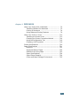 CONTENTS Chapter 1: INTRODUCTION Special Features .................................................. Printer Components ............................................. Front View ..................................................... Inside View .................................................... Rear View ...................................................... 1.2 1.4 1.4 1.5 1.5 Understanding the Control Panel ............................ 1.6 On Line/Error and Toner Save LEDs ................... 1.