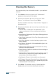 Clearing the Memory You can selectively clear information stored in your machine’s memory. 1 Press Menu on the control panel until “Maintenance” appears on the top line of the display. 2 Press the scroll button (➛ or ❿) until you see “Clear Memory” on the bottom line and press Enter The first available menu item, “Clear All Mem.” displays on the bottom line. 3 Press the scroll button (➛ or ❿) until you see the item you want to clear. • Clear All Mem.