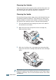 Cleaning the Drum If there are streaks or spots on your print, the OPC drum of the cartridge may require cleaning. 1 Before setting the cleaning procedure, make sure that paper is loaded in the machine. 2 Press Menu on the control panel until “Maintenance” appears on the top line of the display. The first available menu item, “Clean Drum,” displays on the bottom line. 3 Press Enter. 4 When the display asks you to confirm your selection, press Enter. The machine prints a cleaning page.