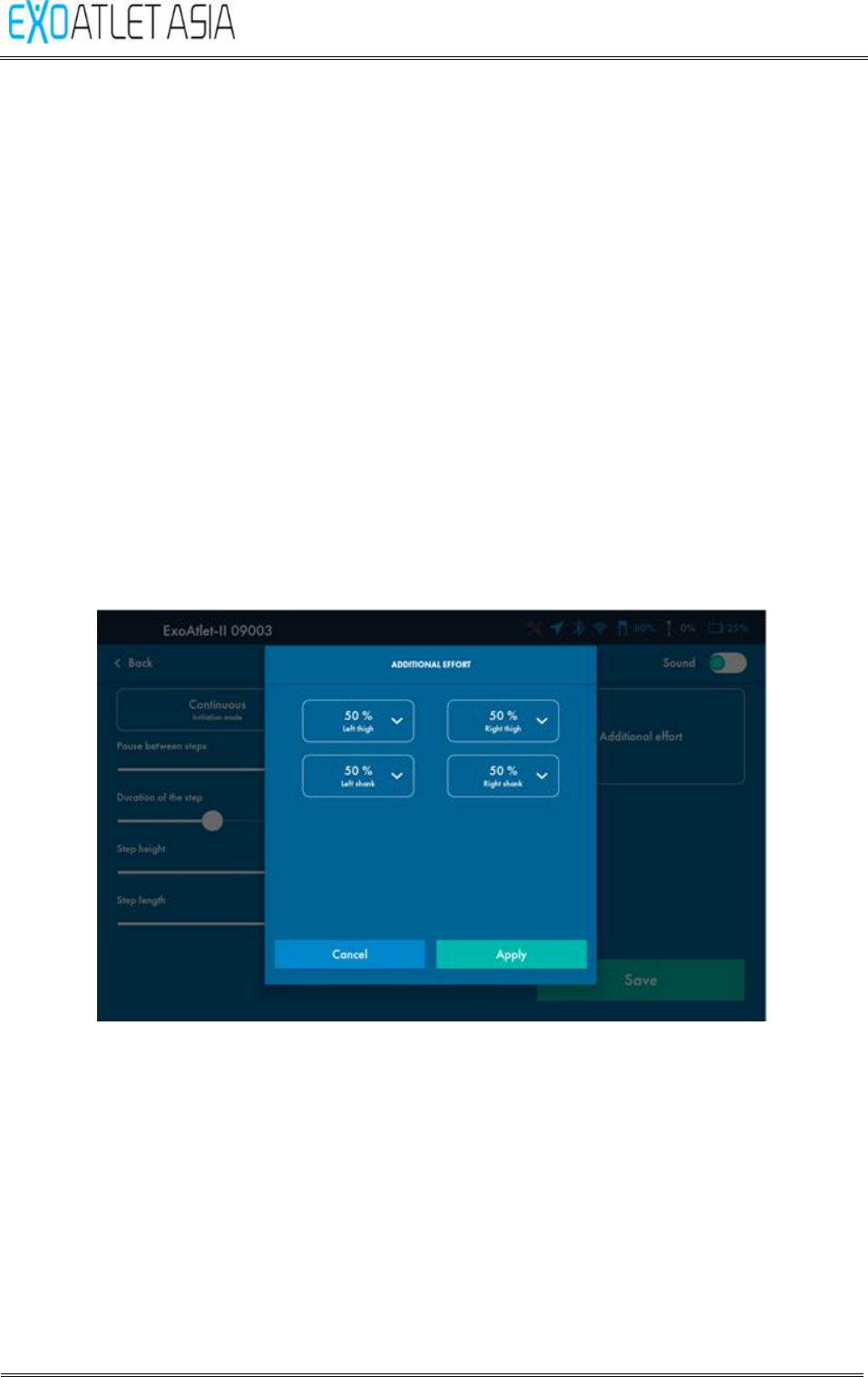 movement by itself). After changing the degree of support of exoskeleton it is necessary