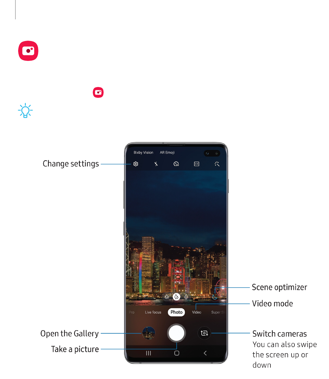 TIPIf Quick launch is enabled, quickly press the Power key twice.