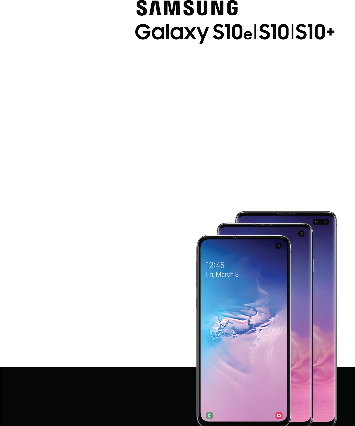 Table of contents Device features 1 Wireless PowerShare 1 Meet Bixby 1 Camera 1 Security 1 Expandable storage 1 Night mode 1 Gestures only navigation 2 Water and dust resistance 2 Infinity display 2 Getting started 3 Galaxy S10e 4 Galaxy S10 5 Galaxy S10+ 6 Assemble your device 7 Wireless PowerShare 9 Start using your device 11 Use the Setup Wizard 11 i GEN_G970U_G973U_G975U_EN_UM_TN_SAU_ 022019_FINAL
