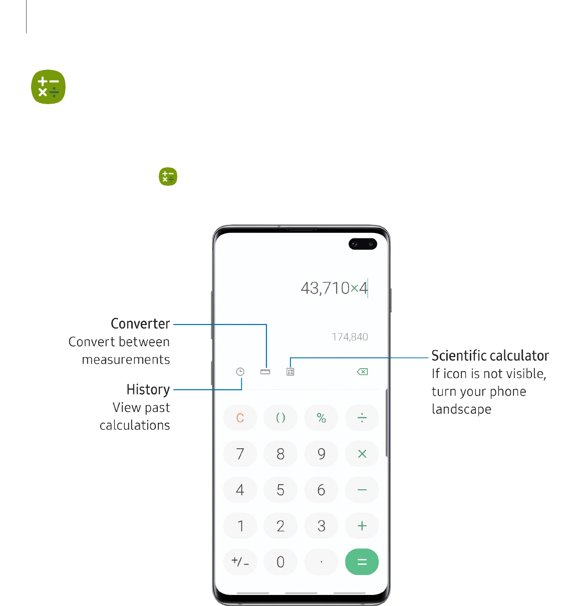 The Calculator app features both basic and scientific math functions, as well as a unit