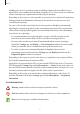 Basics Precautions for device overheating If you begin to feel uncomfortable due to the device overheating, stop using the device. When the device heats up, the features and performance may be limited or the device may turn off to cool down. The feature is only available on supported models. • If the device overheats and reaches a certain temperature, a warning massage will appear to prevent device failure, skin irritations and damages, and battery leakage.