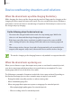 Appendix The touchscreen responds slowly or improperly • If you attach a screen protector or optional accessories to the touchscreen, the touchscreen may not function properly. • If you are wearing gloves, if your hands are not clean while touching the touchscreen, or if you tap the screen with sharp objects or your fingertips, the touchscreen may malfunction. • The touchscreen may malfunction in humid conditions or when exposed to water. • Restart your device to clear any temporary software bugs.