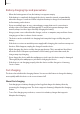 Basics • Connectivity problems and battery drain may occur in the following situations: – – If you attach metallic stickers on the antenna area of the device – – If you attach a device cover made with metallic material to the device – – If you cover the device’s antenna area with your hands or other objects while using certain features, such as calls or the mobile data connection • Using a Samsung-approved screen protector is recommended. Unapproved screen protectors may cause the sensors to malfunction.