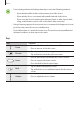 Basics Instructional icons Warning: situations that could cause injury to yourself or others Caution: situations that could cause damage to your device or other equipment Notice: notes, usage tips, or additional information Package contents Check the product box for the following items: • Device • Quick start guide • The items supplied with the device and any available accessories may vary depending on the region or service provider.