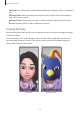 Apps and features 3 Select the mode you want to use. • SCENE: Your emoji mimics your expressions. • MASK: Your emoji’s face appears over your face so it looks like you are wearing a mask. • MIRROR: Your emoji mimics your body movements. • PLAY: Your emoji moves on a real background. 4 Tap to take a photo or tap and hold to record a video. You can view and share the photos and videos that you have captured in Gallery.