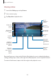Apps and features Split screen view 1 While using an app, drag the Multi window tray towards the centre of the screen. The apps list will appear. If the Multi window tray is not visible, launch the Settings app, tap Advanced features, and then tap the Multi window tray switch to activate it. 2 Select an app from the list. The selected app will launch on the lower window. Running recently used apps in the split screen view You can run your recently use apps in the split screen view.