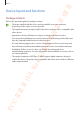 Hard keys Key 발3 그룹 Basics Function • When the device is off, press and hold to turn it on. • Press to turn on or lock the screen. Side key Side key + Volume Down key 제품 개 • Press and hold to start a conversation with Bixby. Refer to Using Bixby for more information. • Press twice or press and hold to launch the app or feature you set. • Press simultaneously to capture a screenshot. • Press and hold simultaneously to turn off the device.