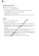 Settings Unpairing Bluetooth devices 1 2 3 Tap Bluetooth on the Settings screen. The device displays the paired devices in the list. Tap next to the device name to unpair. Tap Unpair. Tethering and Mobile hotspot FI N A L Use the device as a mobile hotspot to share the device’s mobile data connection with other devices when the network connection is not available. Connections can be made via Wi-Fi, USB, or Bluetooth. On the Settings screen, tap Tethering and Mobile hotspot.