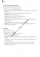 Appendix • Vibration feedback: Set the device to vibrate when you explore the screen. • Sound feedback: Set the device to emit a sound when you control the screen, such as scrolling the screen, and more. • Focus speech audio: Set the device to turn the media volume down when the device reads an item aloud. • Sound volume: Adjust the volume that sound is played when you touch the screen to control it. This feature is available when Sound feedback is selected.