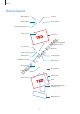 Basics • Do not cover the antenna area with your hands or other objects. This may cause connectivity problems or drain the battery. • Using a Samsung-approved screen protector is recommended. Unapproved screen protectors may cause the sensors to malfunction. • Do not allow water to contact the touchscreen. The touchscreen may malfunction in humid conditions or when exposed to water. Keys Key Function • Press and hold to turn the device on or off. • Press to turn on or lock the screen.