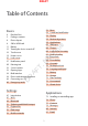 DRAFT Table of Contents Fi na l Camera Gallery Smart Manager S Planner S Health S Voice Music Video Voice Recorder My Files Memo Clock Calculator Google apps Microsoft apps ot 82 98 99 100 102 105 106 107 107 110 110 111 112 113 115 ,N Appendix D R AF T 116 Accessibility 131 Troubleshooting 136 Removing the battery (non-removable type) 3