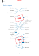 DRAFT Basics • Do not cover the antenna area with your hands or other objects. This may cause connectivity problems or drain the battery. • Using a Samsung-approved screen protector is recommended. Unapproved screen protectors may cause the sensors to malfunction. • Do not allow water to contact the touchscreen. The touchscreen may malfunction in humid conditions or when exposed to water. Keys Function • Press and hold to turn the device on or off. Power • Tap and hold to launch the split screen view.