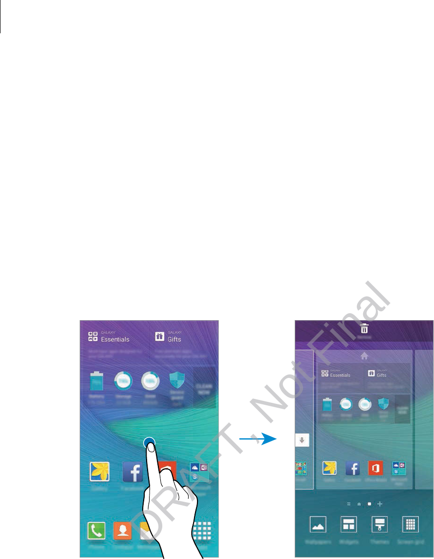screen panels. You can also set the Home screen wallpaper, add widgets to the Home screen,