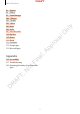 DRAFT Table of Contents pr ov al O nl y Camera Gallery Smart Manager S Planner S Health S Voice Music Video Voice Recorder My Files Memo Clock Calculator Google apps Microsoft apps Ap 82 98 99 100 102 105 106 107 107 110 110 111 112 113 115 na l, Appendix D R AF T, N ot Fi 116 Accessibility 131 Troubleshooting 136 Removing the battery (non-removable type) 3