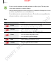 DRAFT Applications • Message: Send a message. • Internet: Browse webpages. • Contacts: Open the contacts list. • S Planner: Open the calendar. • Memo: Create a memo. • y : End the current call. O nl During a video call Tap the screen to use the following options: : Switch between the front and rear cameras. • : End the current call. • : Turn off the microphone so that the other party cannot hear you.
