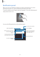 To open the notification panel, drag the status bar downwards. To close the notification panel,
